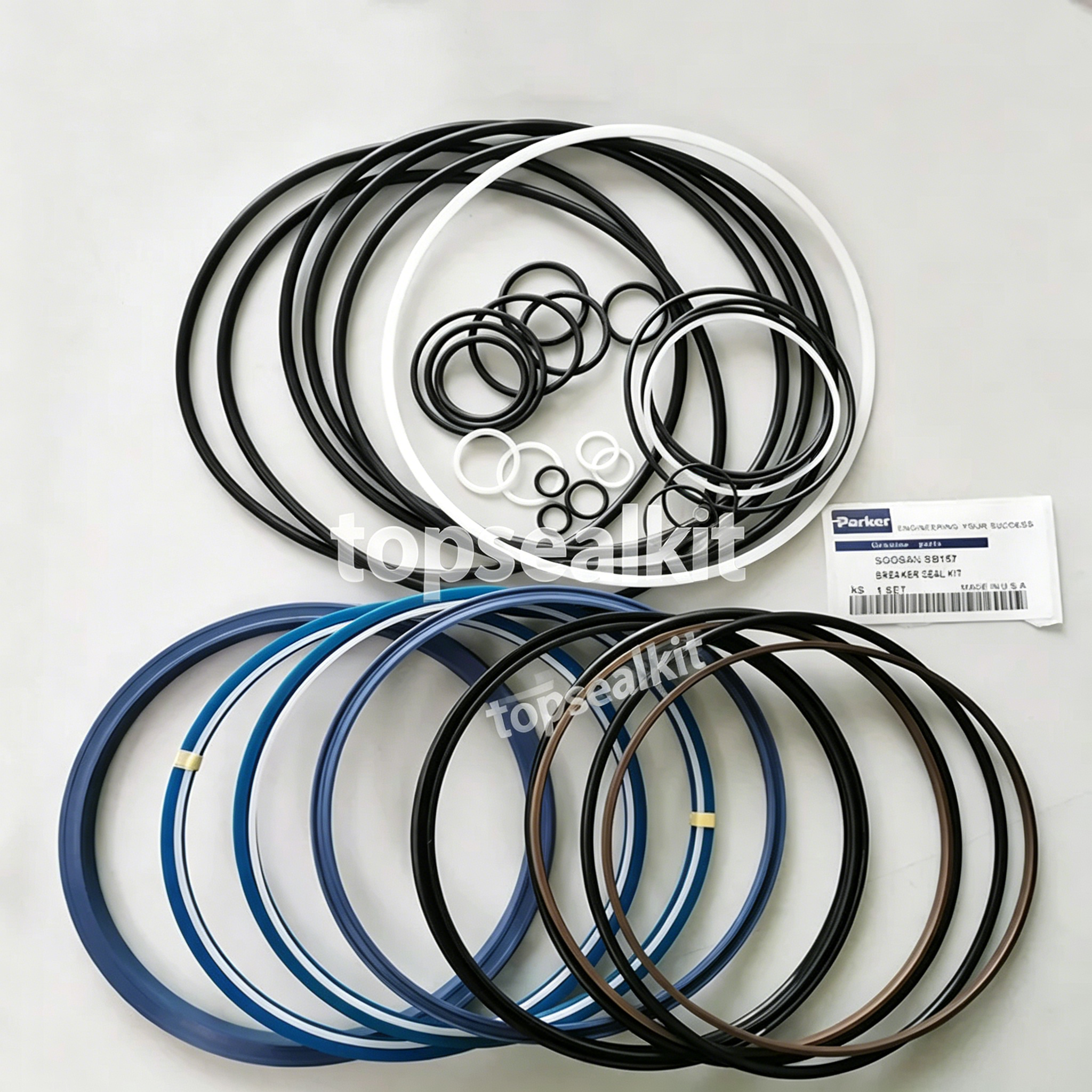Soosan SB157 seal kit, hydraulic breaker seal kit, Soosan SB157, 175mm breaker seal kit, Topsealkit, hydraulic hammer seal kit, TPU NBR PTFE seal kit, Soosan breaker parts, SB157 hydraulic cylinder seal kit